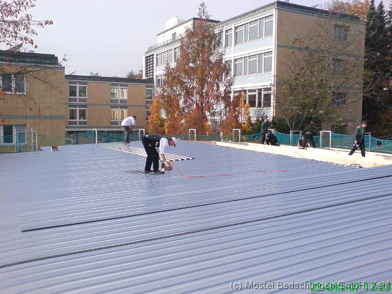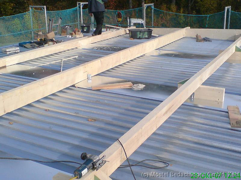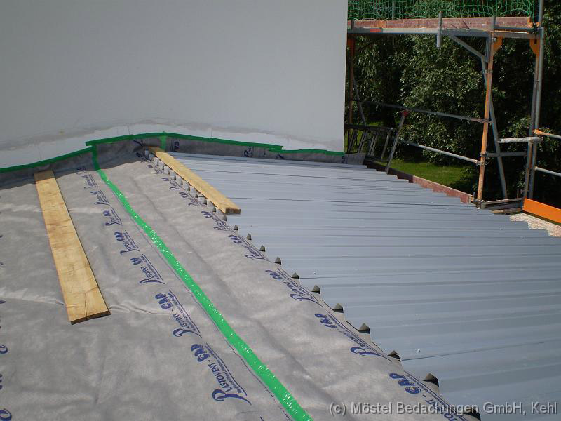 Objekt in Pforzheim Eindeckung der Dachfläche mit Stahl-Trapezblechen Blechdicke 0,75mm. Befestigt mit Edelstahl- schrauben.