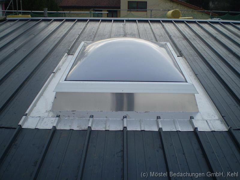 Bauvorhaben in Eckartsweier Stahl-Trapezblecheindeckung, oberseitig 25my nach RAL 9006 mit Edelstahlschrauben und Kalotten befestigt.